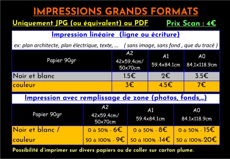 A3 - € 3,00 + prix des impressions (voir ci-dessus)